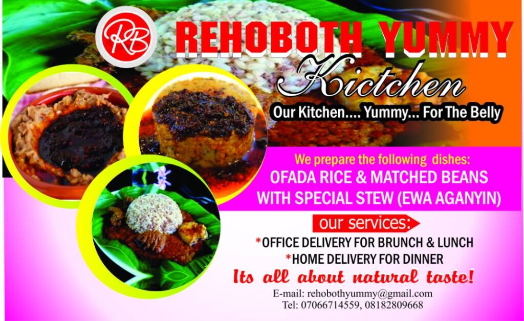 At Rehoboth Yummy Kitchen, we believe food should be more than just filling, it should be an experience. From our signature Ofada rice with special stew to Ewa Aganyin, we bring natural flavors that satisfy every craving.